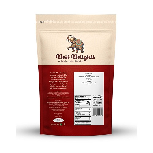 Desi Delights Nailon Sev 180g is made from Gram Flour, Refinded Palmolein Oil & Salt., finely milled to preserve nutrition and authentic taste. Rich in fibre and essential nutrients, this flour is ideal for making traditional Indian rotis, dosas, bhakris, and healthy baked dishes. Clean, pure, and unadulterated — crafted for the modern kitchen with traditional goodness.