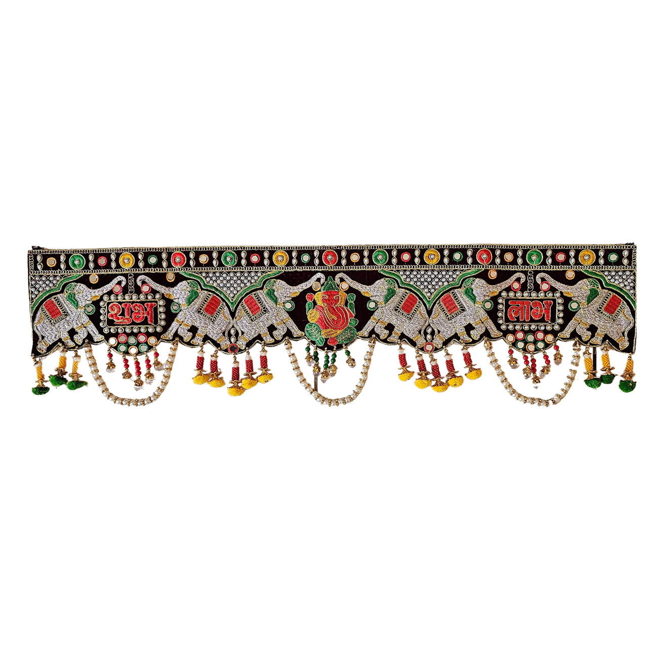 Enhance your festive décor with this elegant Velvet Toran featuring a traditional elephant design. Measuring 36 x 6.5 inches, this toran is perfect for adorning entrances, mandirs, or living spaces during festivals, weddings, and auspicious occasions. Crafted with vibrant colors and durable velvet fabric, it brings a touch of heritage, prosperity, and charm to your celebrations. Traditional Velvet Elephant Toran (36x6.5) to decorate your doorway and add festive charm to your home.